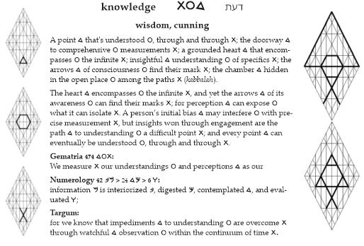 The word forms of what became Sinaitic Hebrew are alphanumeric, which means that they addressed mundane matters through the visual imagery, but that imagery also conveyed a numerical subtext; and the two together, could create fireworks. Before the presentation begins in earnest, I wanted to give two examples. The first ends this page. The second takes up a page all by itself: knowledge first, Abiasaph second: