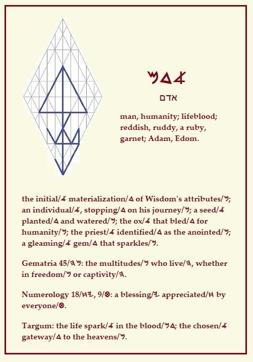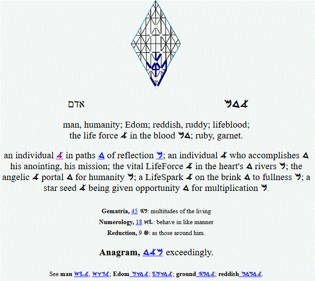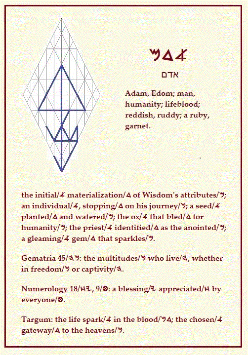 Adam; man; reddish, rudy; a ruby; the spark a in the blood md |