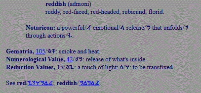 red, reddish; ruddy, florid; man's mda blood, juice md |
