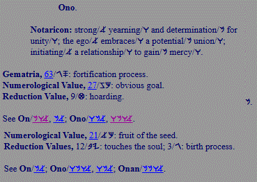 On, Aven; sorrow, grief, vanity; potency, wealth |