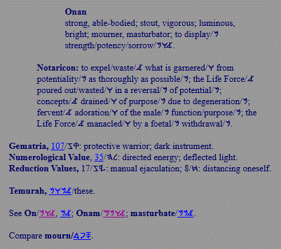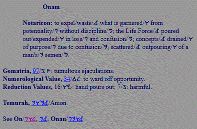 Onan; suicidal; wastes opportunities to renew life |