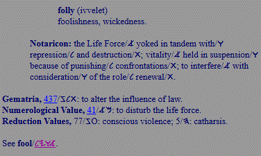 folly; foolishness, impatience, wickedness |