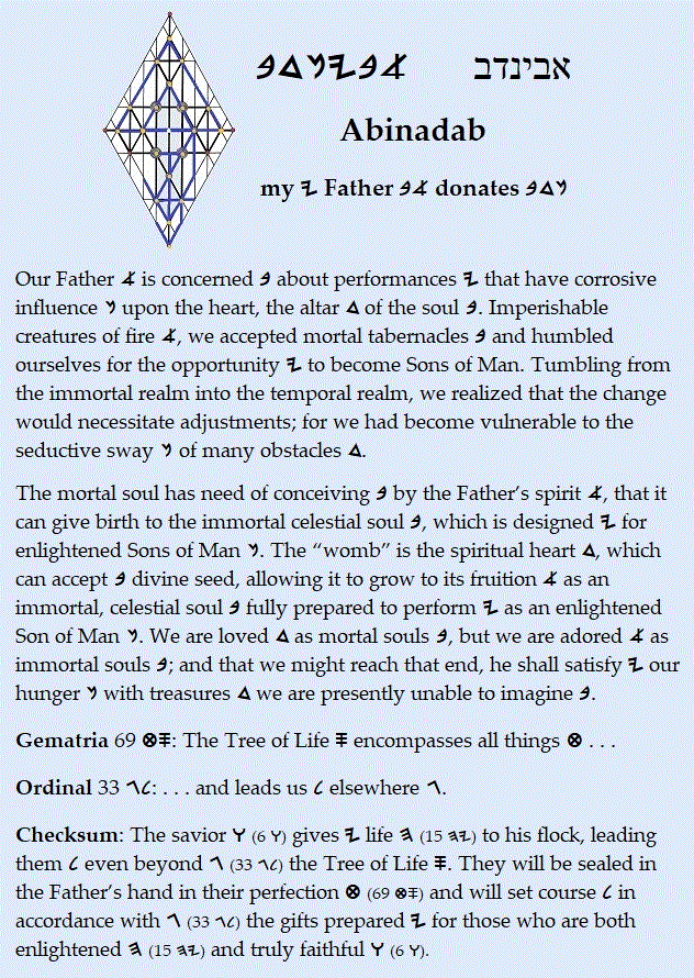Abinidab; my y Father ba donates bdn, is generous bdn |