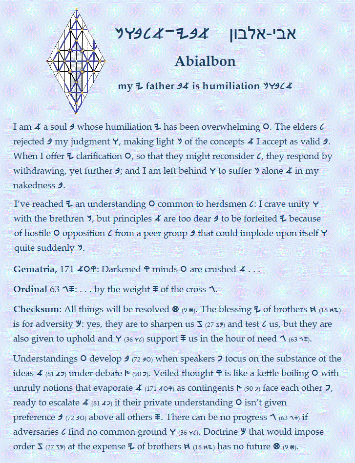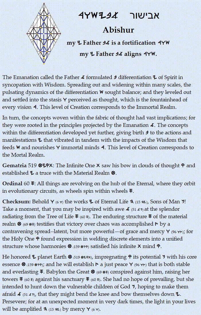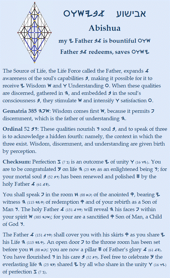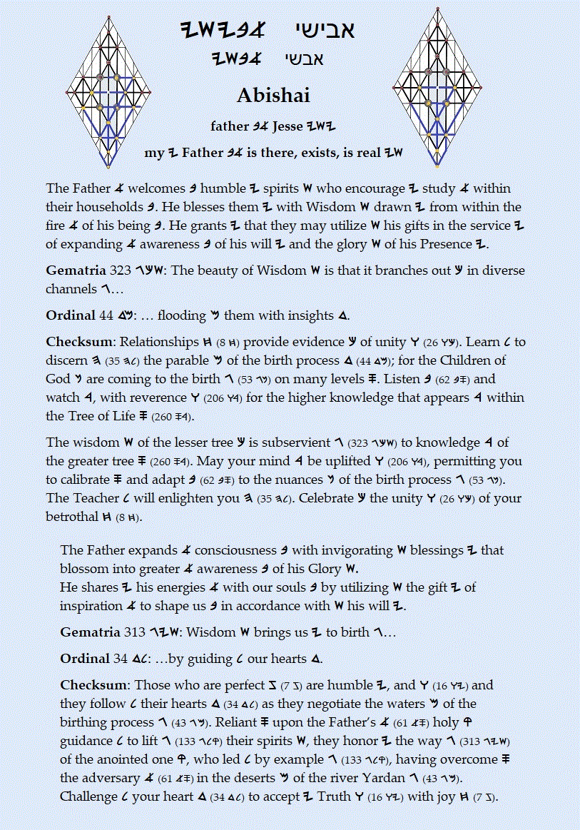 Abishai; Father ba provides y Wisdom's c gifts y |