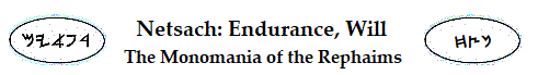 | "Rephaim" is most commonly translated as "giants," which term is accurately applied to the world view of the Rephaim. All things, to the Rephaims, are gigantic in their implications-- so huge that they prevent any possible will for action on their parts from progressing to some active implementation. The Canaanites, in their families, have will to take only what appears, at any given moment, to be the easiest course. For all their carnal belligerence and boastings-- by which appearances the Rephaims affect and maintain facades of gigantic proportions, both for themselves and for their many saviors (whether they be of flesh, of science, of politics, or of religion)-- the Rephaims are miserable creatures; and they are considerably less than men because they imagine that it is necessary to be something more. When an ordeal of testing comes, the Rephaim assumption of its demands disables their resolve to take a stand, themselves; and they run whining to whatever Egyptian staff appears likely to come to their aid, whether the spear or the wand. The Rephaims need not believe in their deliverers. It is enough that they can transfer surrogacy for their perils onto them, relieving themselves of all burdens and the need for any active participation in the process of their rescue. They mock the persecutions others might suffer for principle, and they are ever ready to flee from imminent injury to themselves. When uppermost, they do not know the healthful ways of peace; but as soon as they begin to falter, they sue for treaty as a prescription against pain.  |